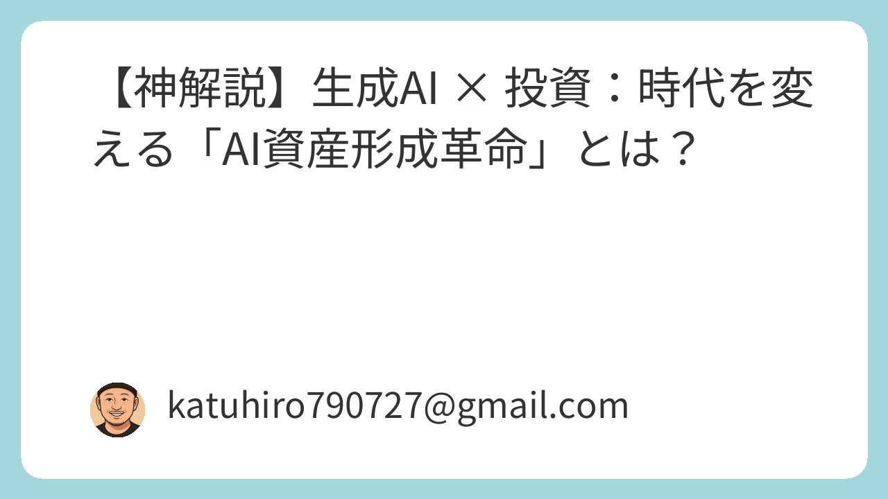 【神解説】生成AI × 投資:時代を変える「AI資産形成革命」とは?